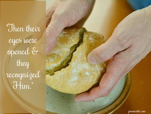 Jesus enters the conversation and begins to explain the Scriptures to them. They invite Him to stay with them, still unaware. When He broke the bread and blessed it, and began to give it out to them did something occur: